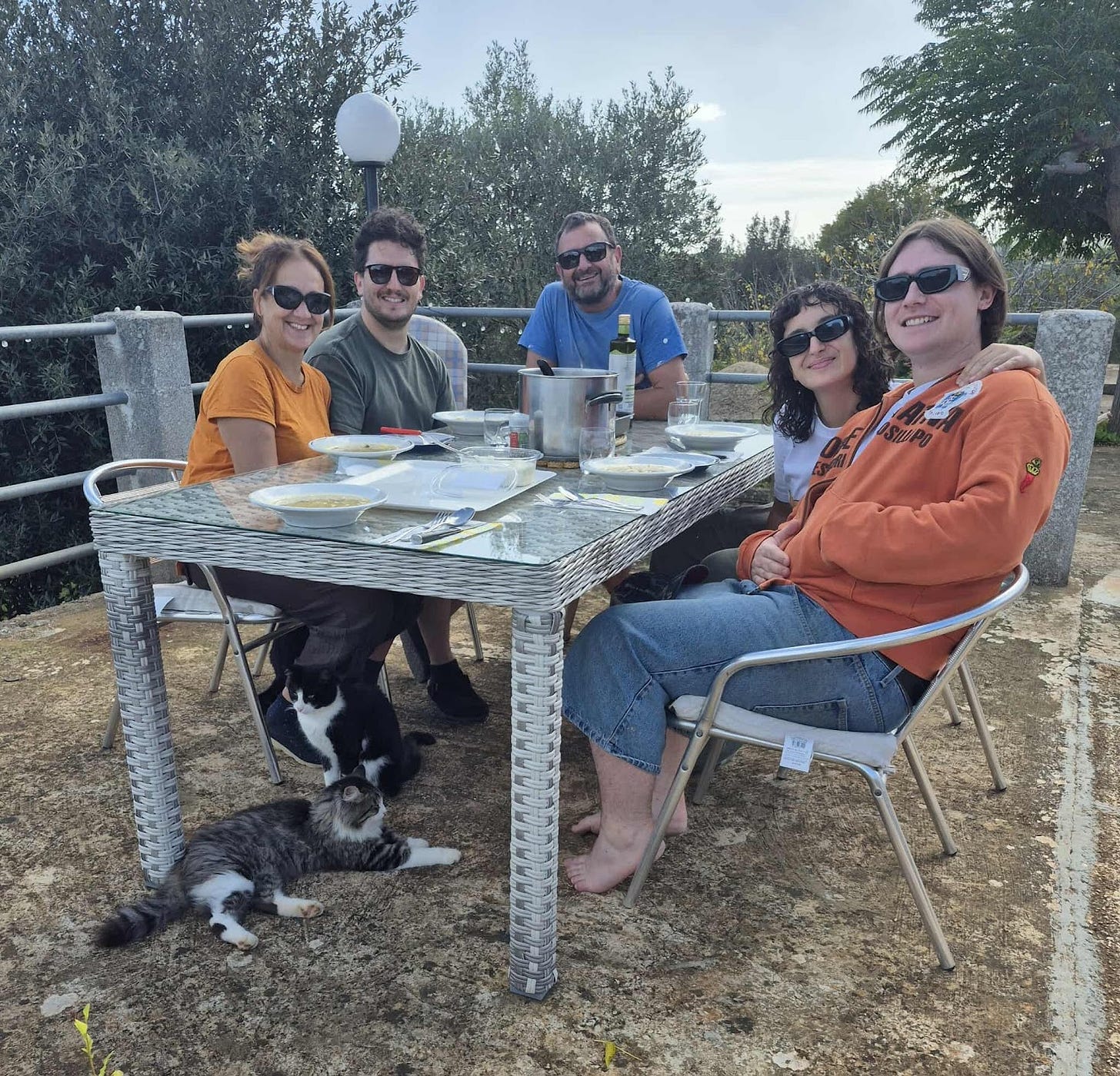 And so, life in Puglia continues. We look forward to experiencing living in a house which is now better insulated, warmer, more comfortable, one from which we will not be evicted into the cold, due to the dust clouds or gangs of men. Looking back over a year, we are amazed at what we have achieved and less overwhelmed by what still needs to be done. I wish I had more time to plant and sow, but events of the last couple of months have distracted me from the vegetable gardens. In the meantime, because of the rain, the meadows flourish with wild flowers lighting up carpets of white and yellow. Our clowder has a new addition, Alieno who is triggering a new dynamic in the family group especially in the two male cats, who are for now, holding on to their testosterone and the echoing threat of chop chop. Another couple of cats curiously stand on the side-lines, wondering if they too will become part of the clowder, something we cannot allow unless we win a sponsorship from Whiskas. I now go for walks with five cats in tow! Quite the spectacle. Curious observations and comments from friends, family, together with my sense of self awareness and deep insight into such matters, confirm I am well and truly on the way to becoming the crazy cat lady!